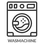 Een gemeenschappelijke wasruimte voor de 3 vakantiehuizen met wasmachine, strijkplank en strijkijzer.